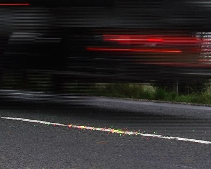 What you see is what you see. Deux photographies de caméras de surveillance des alentours demandées à Alain Sadania, imprimées sur papier, le tout plastifié. Pince à dessin. (le titre est une citation historique du peintre étatsunien Franck Stella, datant de 1966. (Ici, « Ce que tu vois est ce que tu vois » plutôt que « Ce qui est à voir est ce que vous voyez ».)
